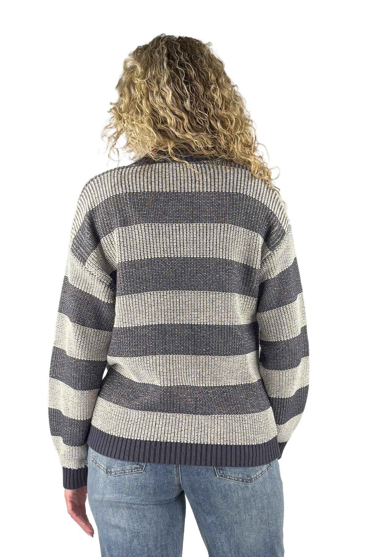 A good cardigan is the VIP of any wardrobe. Perfect for layering over a tee for a casual day our (or a cozy night in), pair it with a blouse and trousers and you are office ready or replace the hoodie on a chilly evening. The bold, French inspired stripes, v-neck and classic button front offers timeless styling that you will reach for again and again.